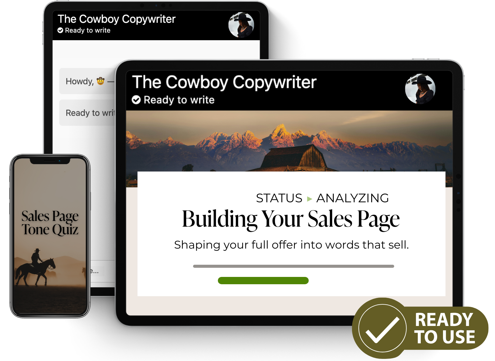 If you're ready to write your sales page copy with expert guidance, answer a few guided questions about your offer and get customized sales page copy, that is strategically built to convert, structured to sell, and ready to publish in under 30 minutes.